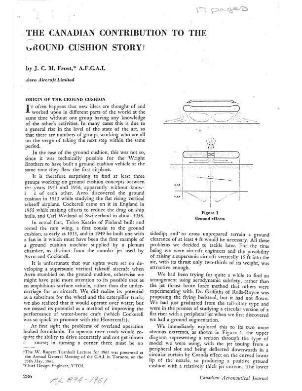 Description written by Chief Design Engineer, J. C. M. Frost. Much technical material in form of graphs pg. 286-302 (Avrocar)
