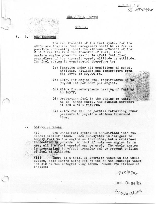 Complete description and diagrams of the fuel system of the Arrow; not obvious if this is a planning or as-built document