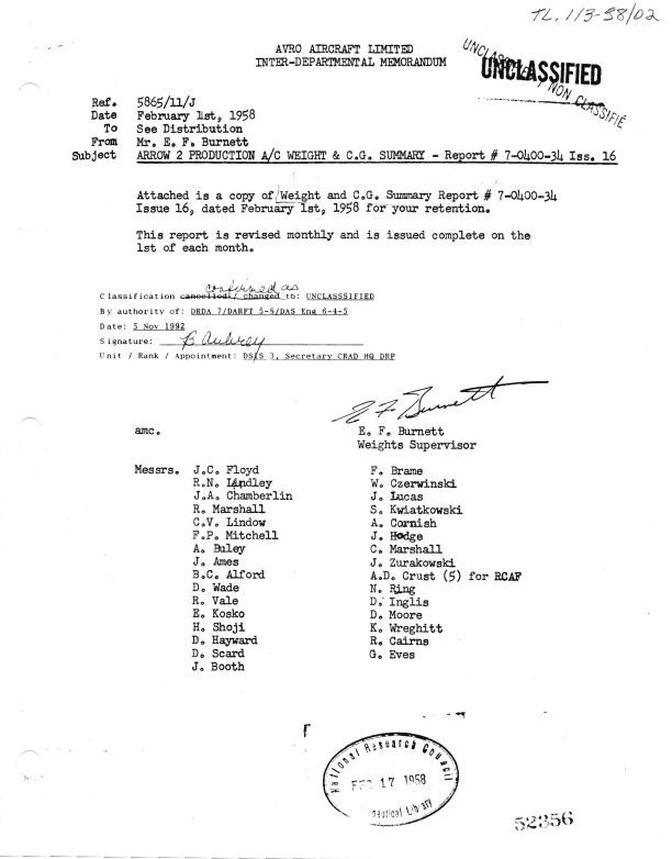 Arrow 2 Production A/C Weight and C.G. Summary Report #7-0400-34 Issue 16
