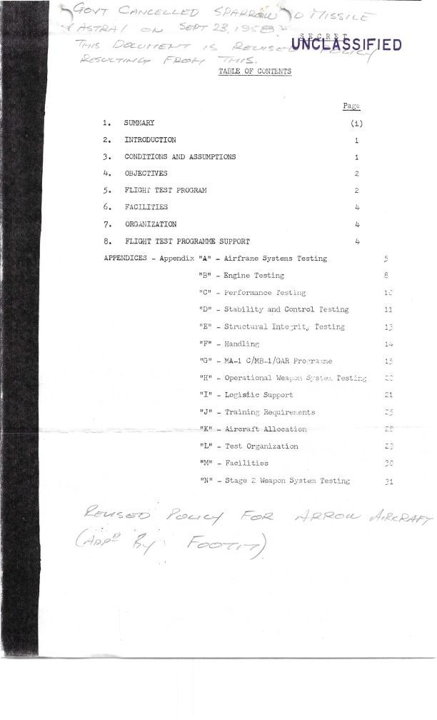 Revised Arrow Weapons System due to Cancellation of Sparrow/Astra Missle System. Policy and Programme Description to install FCS/Missle System into the Arrow (i.e. MA-1C/Falcon 3A, 4A and MB-1) to replace the Sparrow/Astra System; Program Outline to Develop, Install and Test New Missle System for Arrow due to Cancellation by the Government of the Sparrow/Astra System