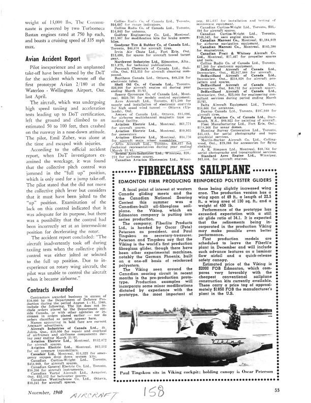 Page 53 Contracts Awarded - Avro Aircraft Ltd. was awarded a contract  by the Department of Defence Production in the amount of $36,817  for technical representatives during year ending March 31/1961General Notes