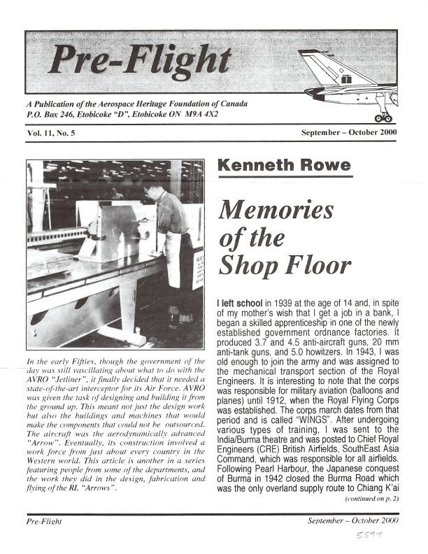 Memories of the shop floor - Recollections of a tool & die maker of working on the CF-100 and Arrow from 1953-1959. A.V.Roe Canada Ltd., Department 3901; Department 4404; Department 4403 (Toolroom); DC-3.Publication Details