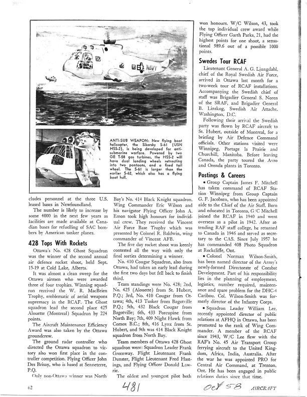 Page 62 Two senior officers of the Royal Swedish Air Force toured several RCAF stations on a 2 week tour as well as the Avro and Orenda plants in Toronto. 428 Sqn tops Rocket shootPublication Details