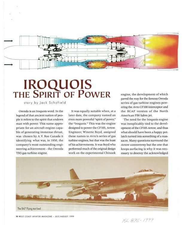 Story of the Iroquois from 1953-59 - scan includes page 1 (pg18) of After the Arrow: an industry quivers. Names include Charles Grinyer, Harry Keast, Burt Avery, Dr. A. Muraszew, Mike Cooper-Sliper, Len Hobbs, Johnny McLaughlin, David Marshall,Publication Details
