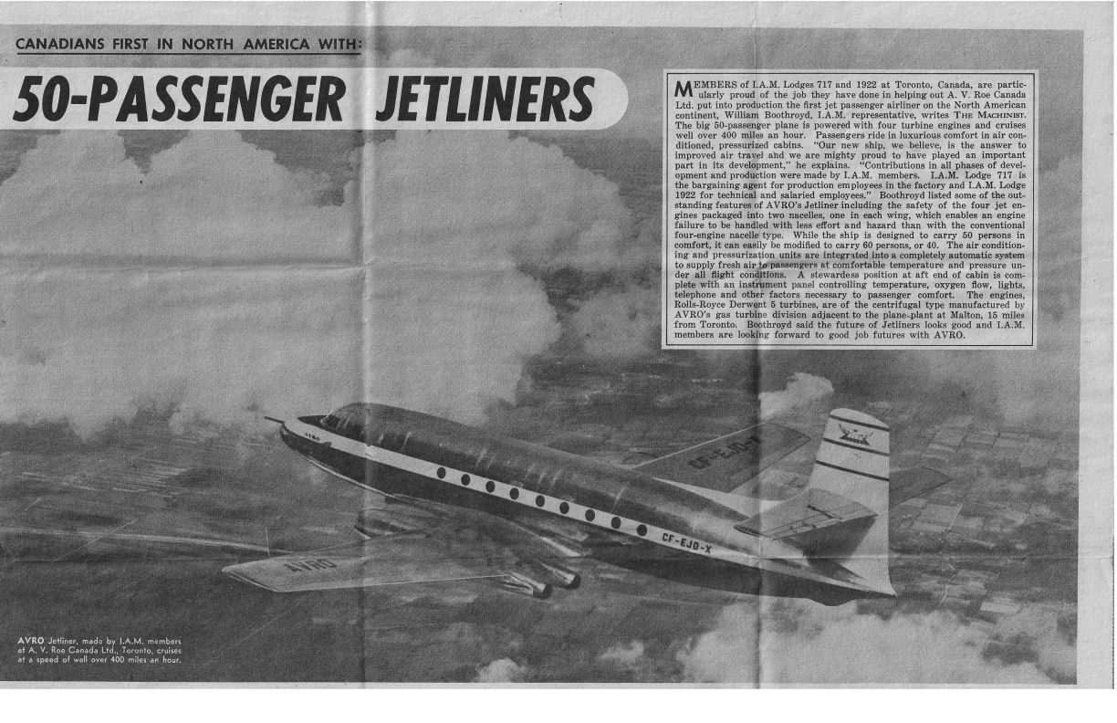 I.A.M. Lodges 717 and 1922 put an advertisement about the jetliner and their input on it. With multiple images of the Jetliners and workersGeneral Notes