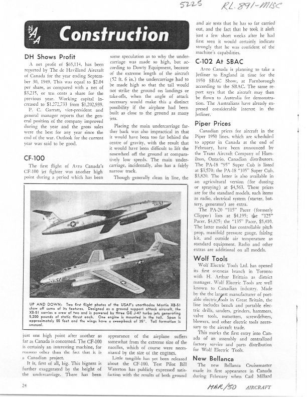 pg 24 CF-100 - design parameters. C-102 at SBAC - C-102 to go to England. pg. 26 - The Jetliner - Further details revealed. Also, CF-100 Avro engine photo.Publication Details