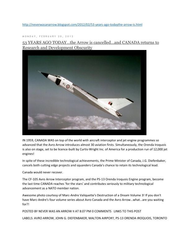 53 Years ago today… the arrow is cancelled… and canada returns to Research and Development obsurity