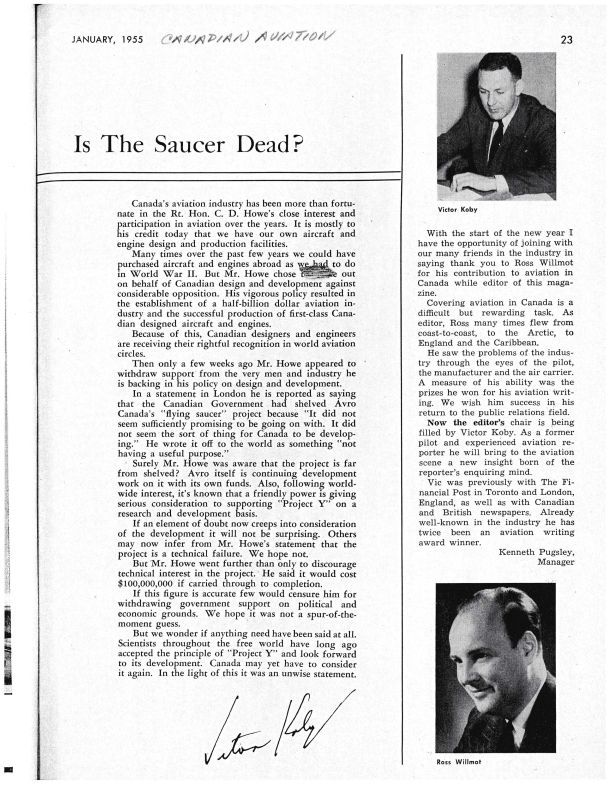 Pg 23 - Editorial about C.D. Howe's withdrawal of support for the saucer (Avrocar)Publication Details