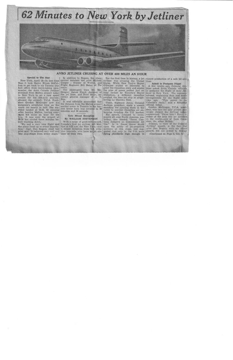 62 Minutes to New York by Canada-built JetlinerEntry/Object ID