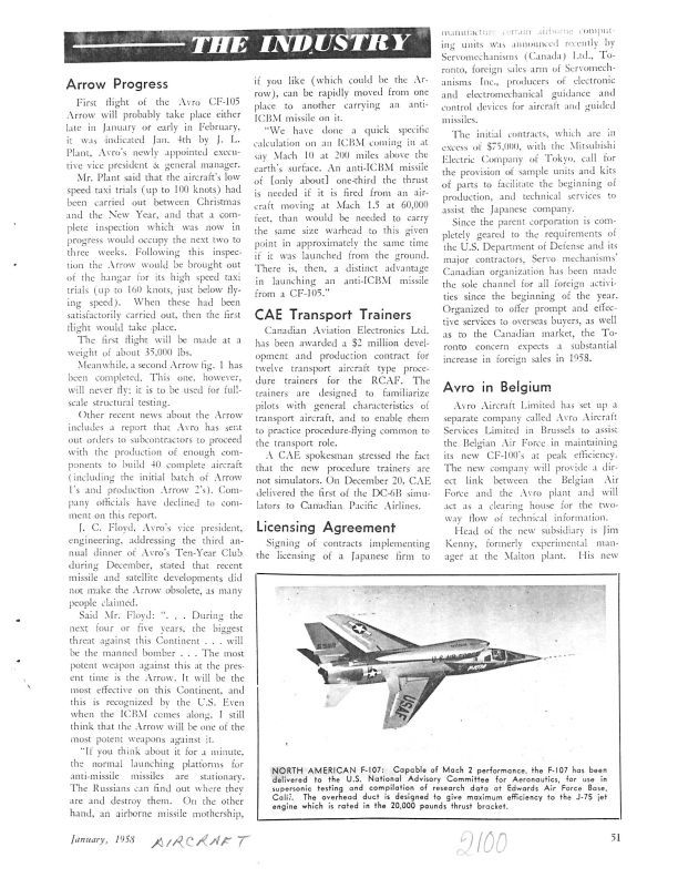 Arror Progress. An anouncement about the upcoming first flight of the Arrow