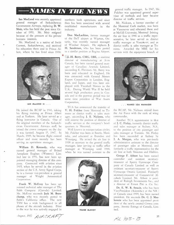 pg 35 - J.H. Berry, Former Director of Manufacturing at Avro moves on to Canadian Arsenals Limited