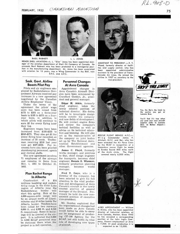 Names include, Crawford (Jr.) Gordon, Edgar H. Atkin becomes Technical Director, James C. Floyd becomes Chief Engineer, Dennis E. Wiseman becomes Works Manager, Fred T. Smye becomes General Manager, William H. Dickie named Director of Industrial Relations.Publication Details