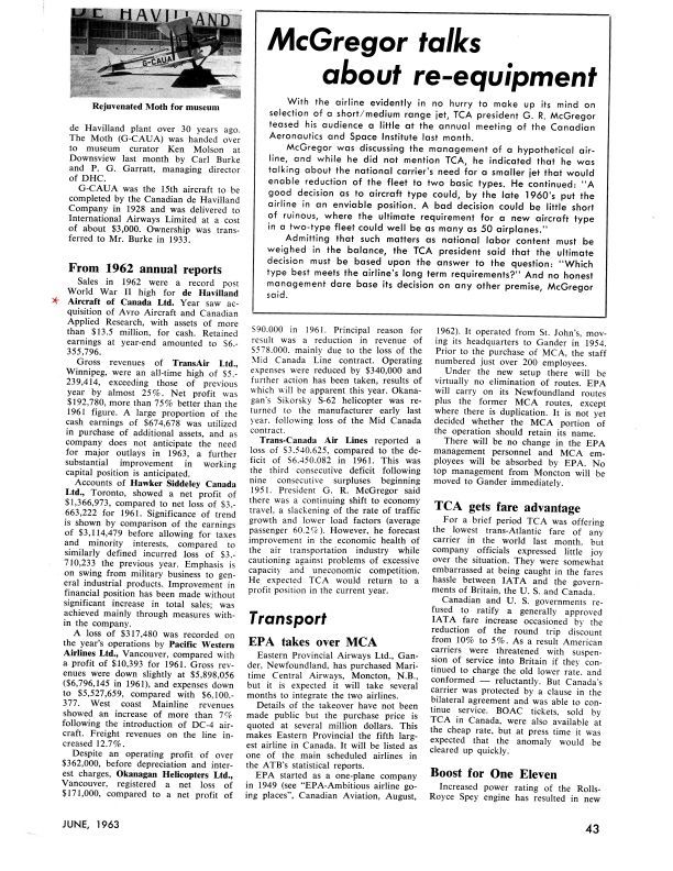 pg 43 From 1962 annual reports - Avro sold - Avro Aircraft and Canadian Applied Research are sold for $13.5 M to de Havilland Aircraft of CanadaPublication Details