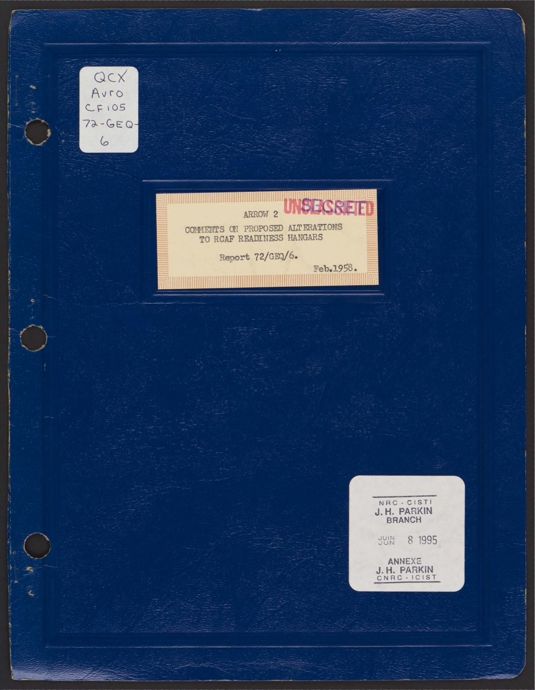 Arrow 2 Comments on proposed alterations to RCAF readiness hangars