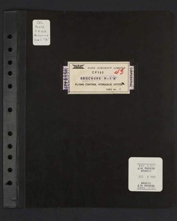 Brochure H1, A Revision Description of flying controls hydraulic systems for CF-105 supersonic all weather fighterEntry/Object ID