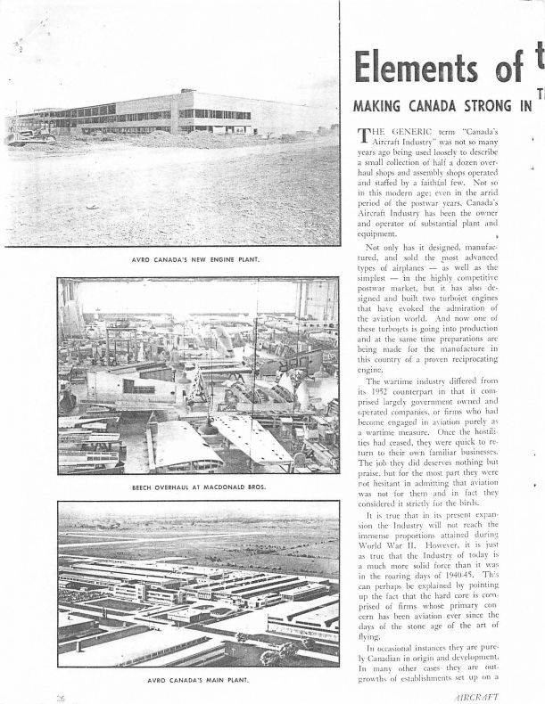 pg 26-44, 66-69 Shows the new Orenda plant, Avro's main plant, photos of key players, highlights key suppliers for the CF-100General Notes