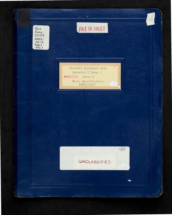 Appendix I to Model specification for Arrow 2 supersonic interceptor aircraft|Aircraft equipment list: appendix I: Arrow 2 model specification: AAMS/105/2. Issue 1