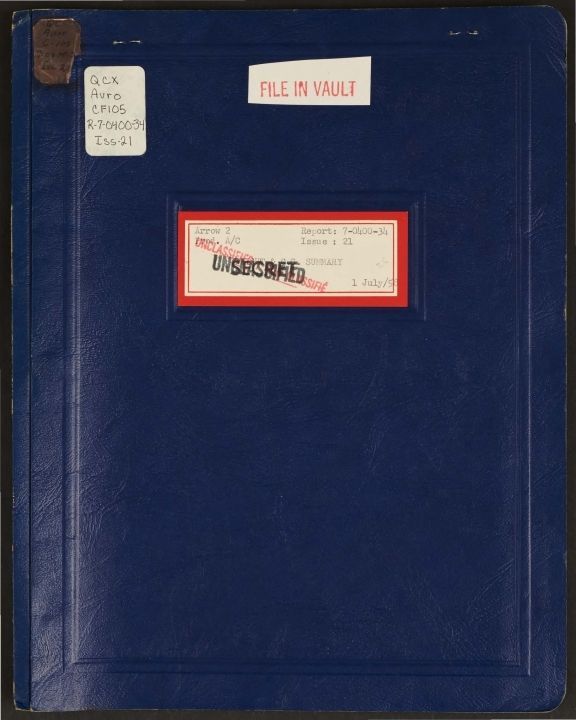 Arrow 2 production A/C: weight & C.G. summary, July 1/58 Report # 7-0400-34 Issue 21