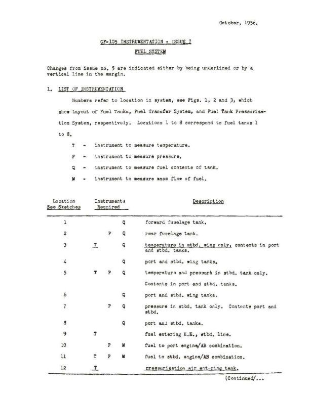 CF-105 - Instrumentation - Issue 7; Fuel System