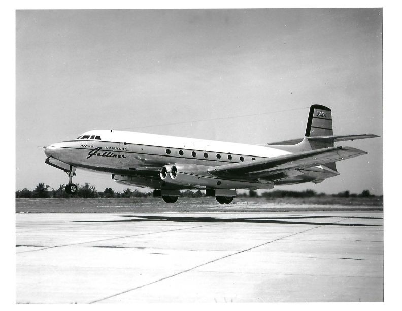 8.8x11 inch Black and White Photo of Avro Jetliner Just before Touchdown
