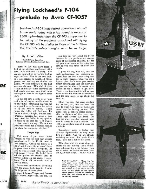 Flying Lockheedès F-104 - prelude to Avro CF-105Entry/Object ID