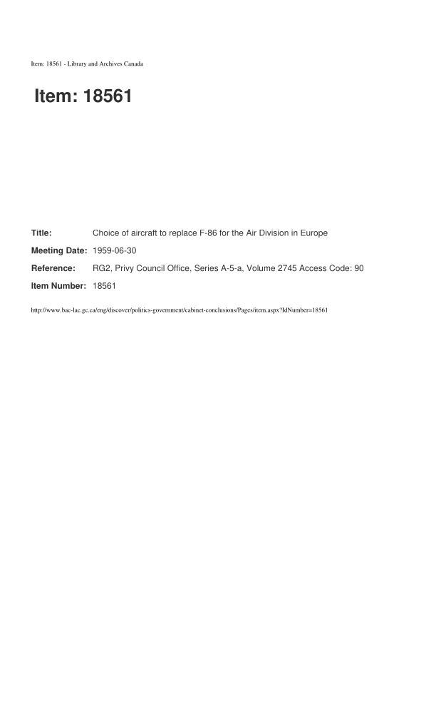 Choice of aircraft to replace F-86 for the Air Division in EuropeGeneral Notes