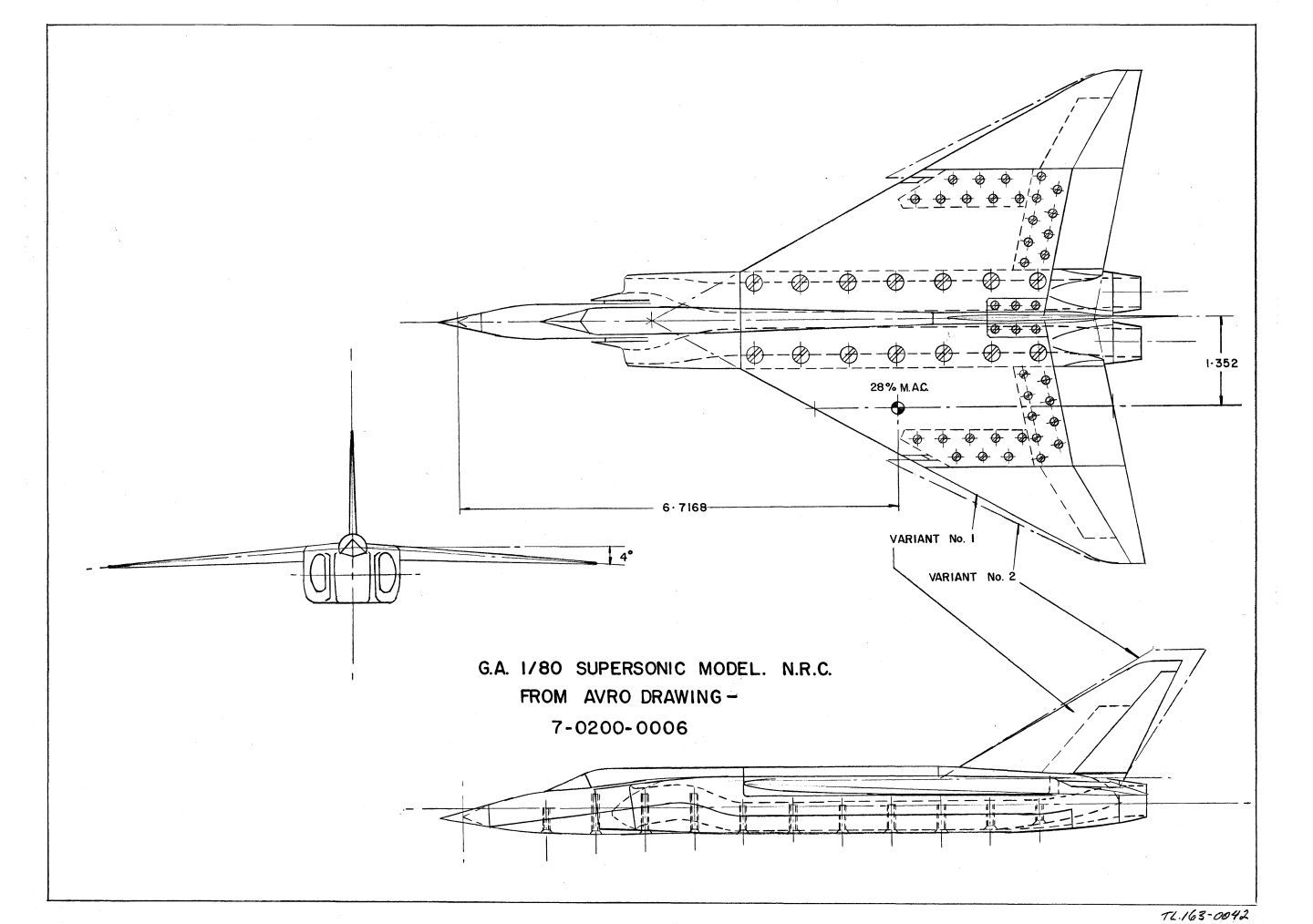 G.A. 1/80 Supersonic Model N.R.C. From Avro Drawing 7-0200-0006 (shows differences between variant 1 and 2)