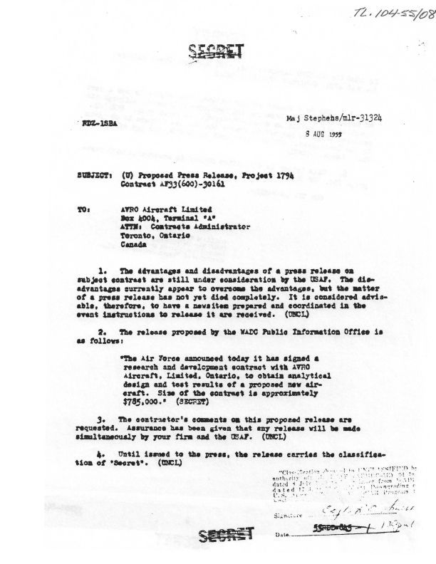 Memo discussing proposed press release of Project 1794 (Contract AF33(600)-30161, To William E. Lamar- Chief, New Developments