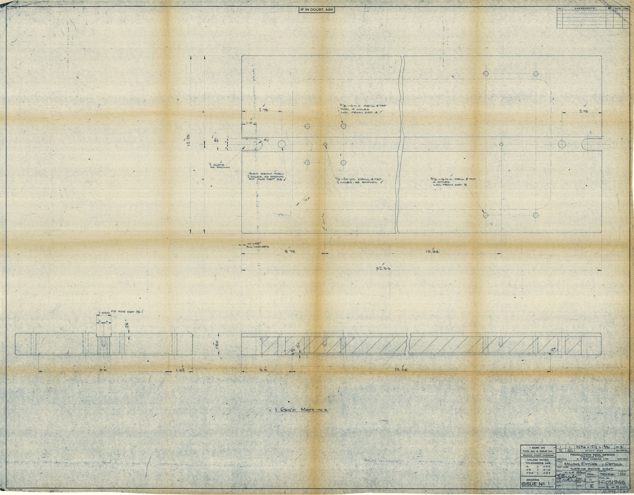 Blueprint of Milling Fixture (Details) - Turbine Rotor Shaft - Sheet 2 of 5 Tool No. 1-F-031948 Part 70136