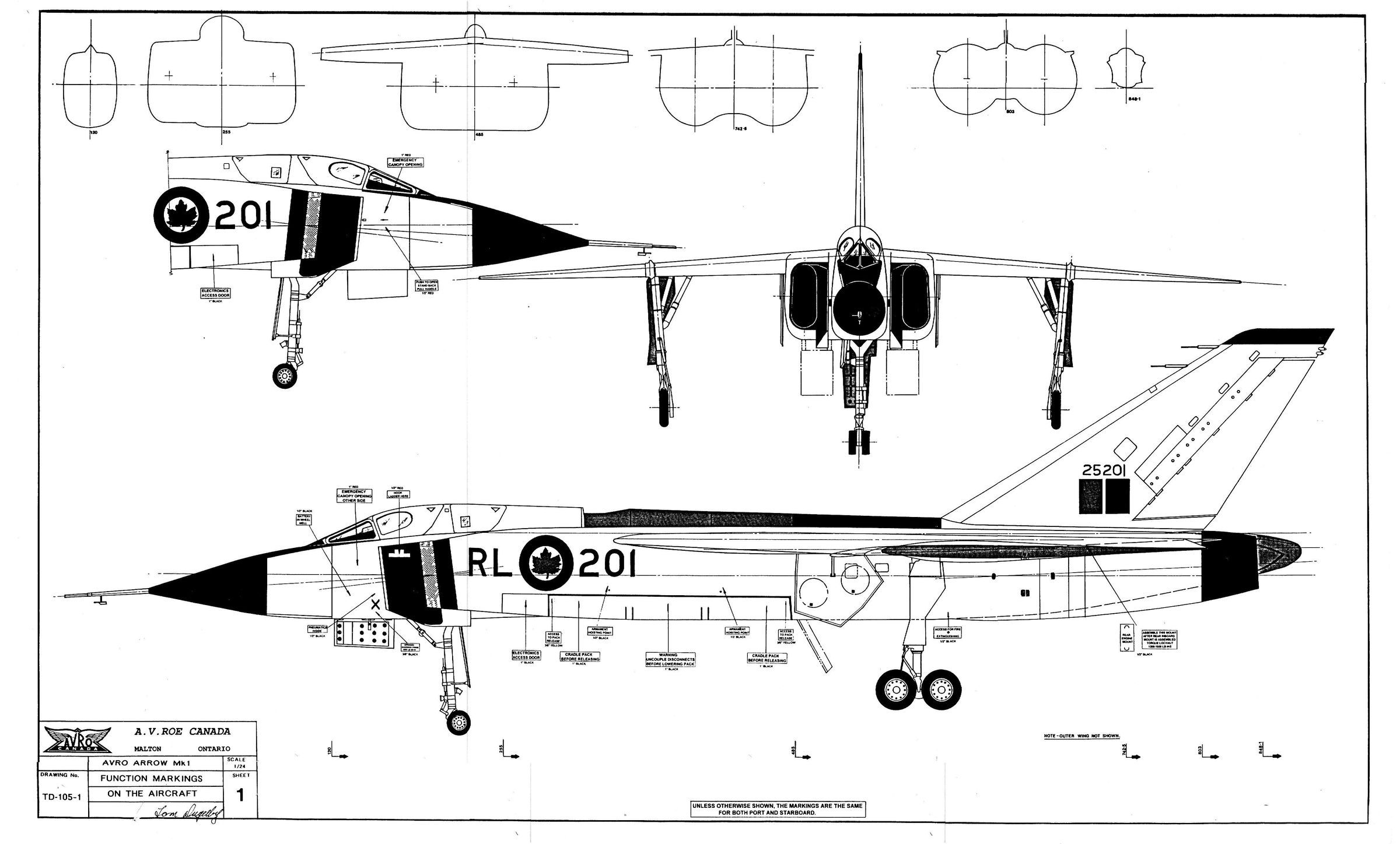 Avro Arrow Functional Markings on the aircraft - Drawing TD-105-1 Sheet 1
