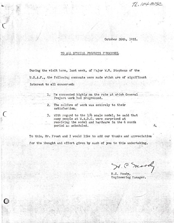 Memo to all Special Projects Personnel RE: visit of Major W.R. Stephens of the USAF