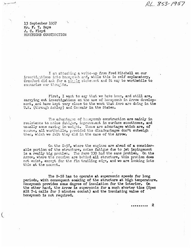 Letter J.C. Floyd to F.T. Smye - Honeycomb Construction