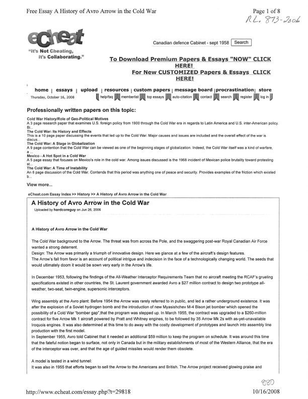 A History of Avro Arrow in the Cold War