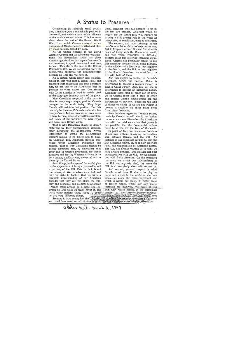 Canada's status in the world is because of our independence and freedom to forge our own future, not becomming subservient to the US.General Notes