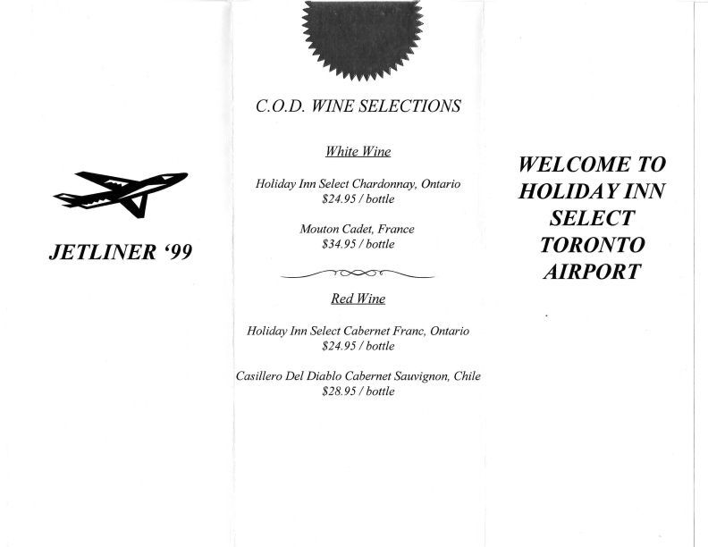 wine list from Jetliner dinner
