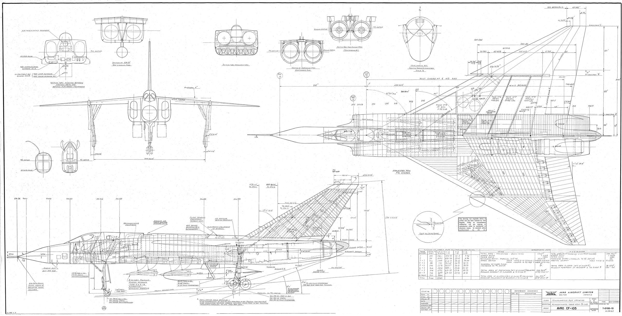 Aerodynamic Three View - A/C C.F. 105, Drawing 7-0100-10