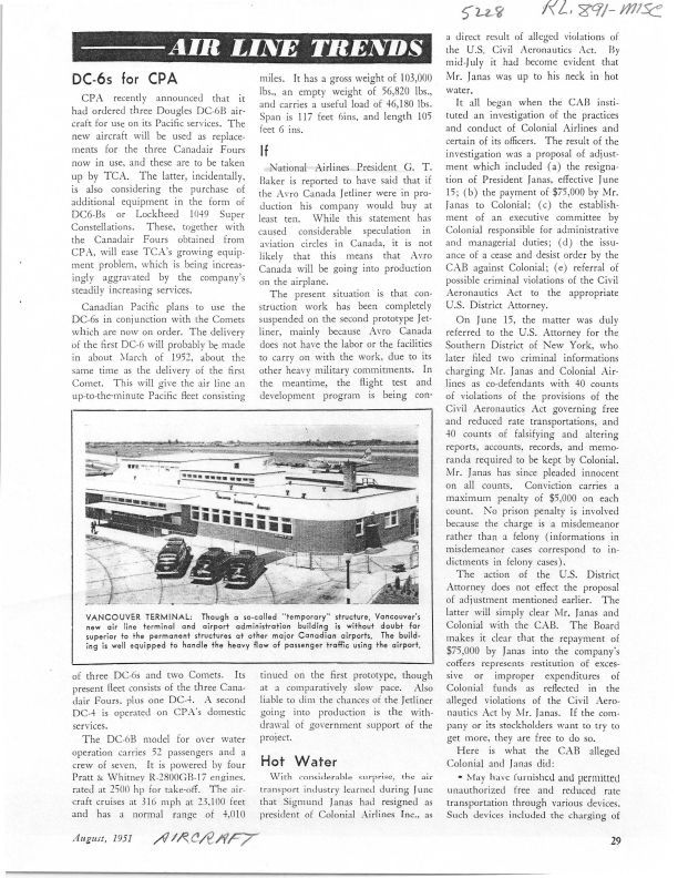 pg 29 If - National Airlines President G.T. Baker is reported to say Airline will buy at least 10 Jetliners if it goes into productionPublication Details