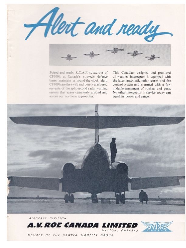 Avro ad for the CF-100. shows back of one Canuck and flight of 5
