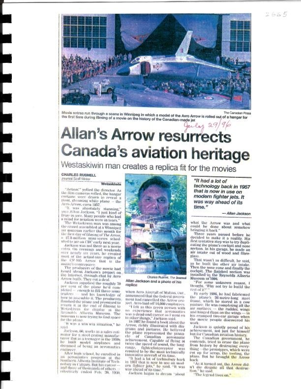 Allan's Arrow resurrects Canada's aviation heritageEntry/Object ID