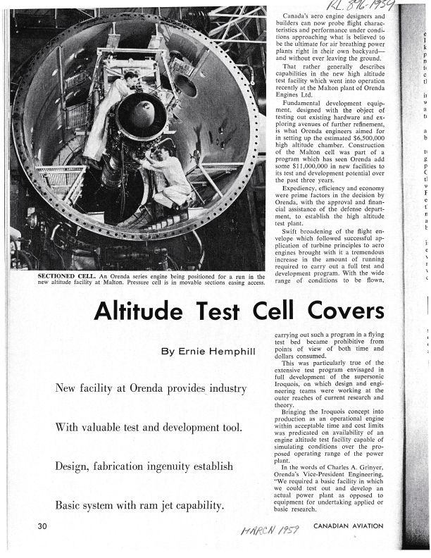 Description of Orenda test facility (Iroquois)