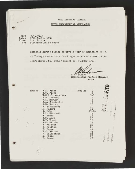 Amendment No. 5 to Design Certificate for Flight Trials of Arrow 1 Aircraft Serial No. 25201 Report No. 71/PROJ 7/1