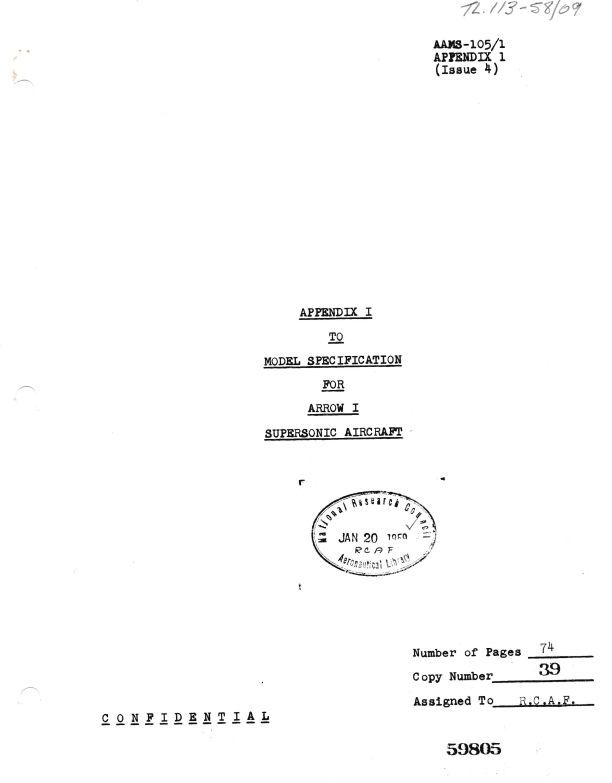 Appendix 1 to Model Specification for Arrow I Supersonic Aircraft