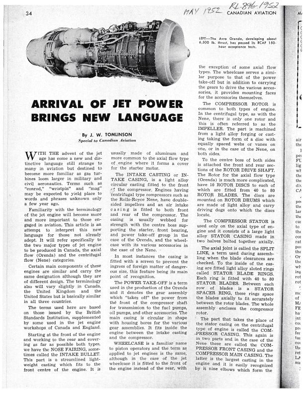 pgs. 34, 35, 56 Description of the new terminology of Jet engine components - images include Orenda engine, Exploded view of Orenda engine with details of partsPublication Details