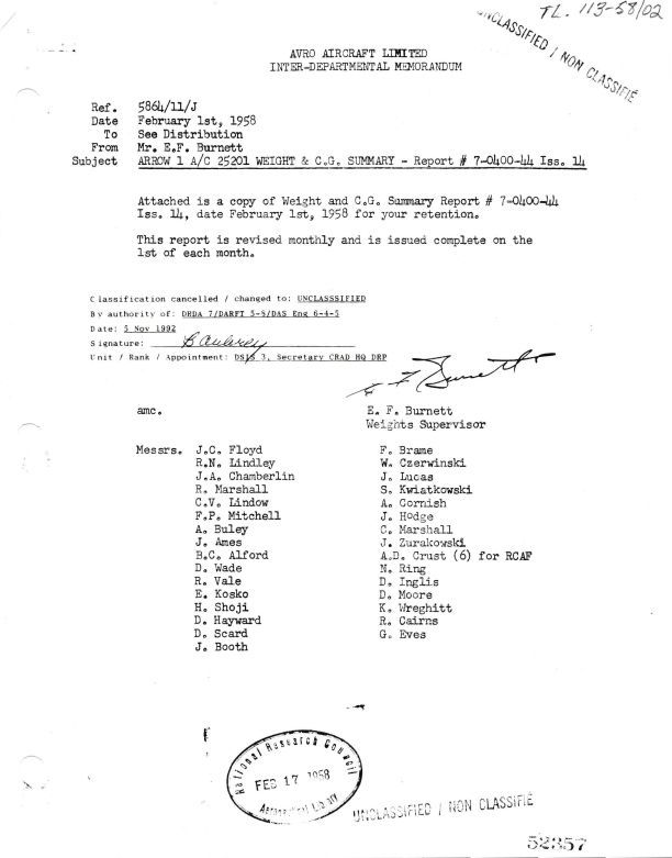 Arrow 1 A/C 25201 Weight and C.G. Summary Report #7-0400-44 Issue 14