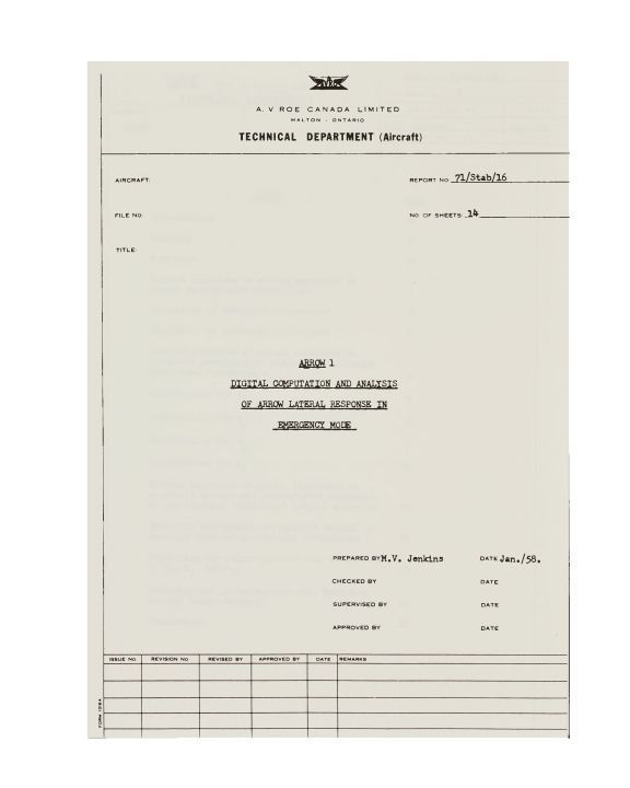 Date / Time Period: 1958-Jan Pages: 14 Author: M.V. Jenkins Publisher: AV Roe Canada Limited