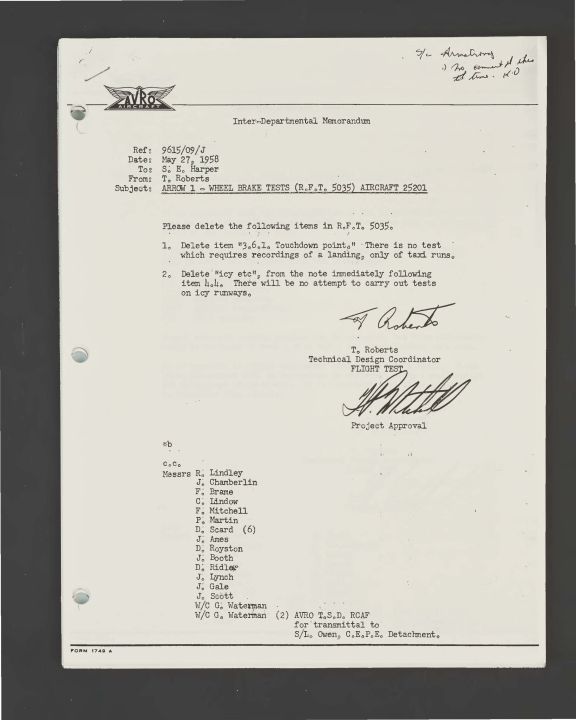 ARROW 1 - WHEEL BRAKE TESTS (R.F.T. 5035) AIRCRAFT 25201