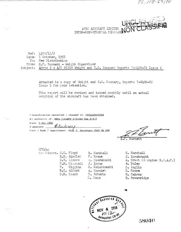 Names include B.C. Alford, F. Brame, R. Brownridge, A. Buley, E.F. Burnett, R. Cairns, A. Cornish, A. Crust, Waclaw Czerwinski, James "Jim" Charles Floyd, T. Higgins, D. Inglis, Stan Kwiatkowski, Robert N. (Bob) Lindley, C.V. Lindow, J. Lucas, C. Marshall, R. Marshall, Fred P. Mitchell, D. Moore, T. Roberts, D.N. Scard, D. Wade, Janusz "Jan" Zurakowski.