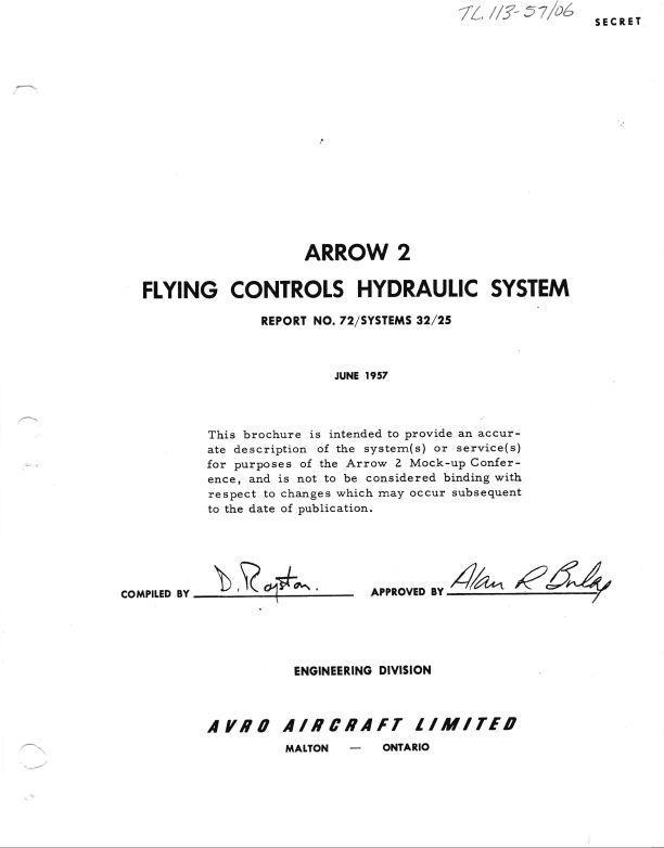 Arrow 2: Flying Controls Hydraulic System Report 72/Systems 32/25