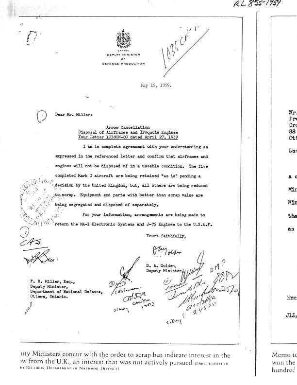 Arrow Cancellation Disposal of Airframe and Iroquois Engines