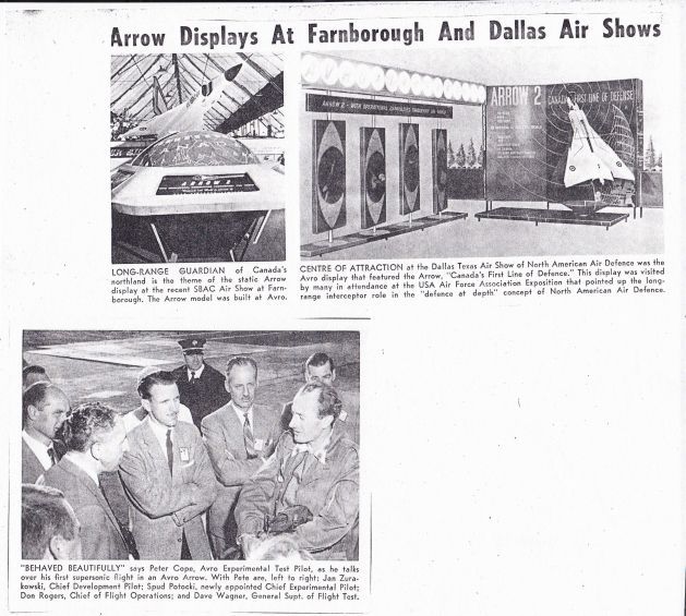 3 images of Arrow and pilots. Cope went supersonic. Names include Peter R. Cope, Władysław Jan (“Spud”) Potocki, Donald "Don" Howard Rogers, Dave Wagner, Janusz "Jan" Zurakowski.